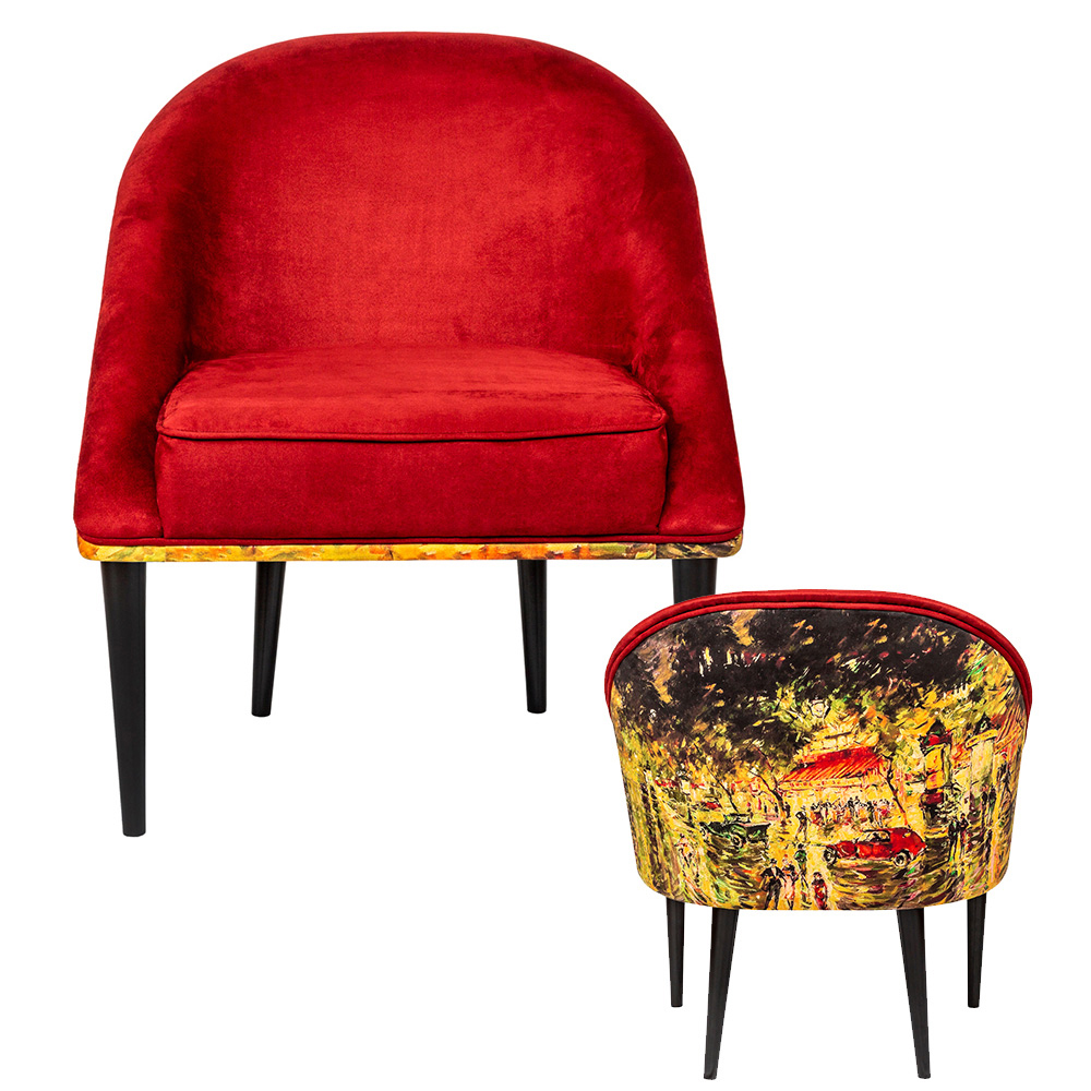 Кресло из натурального бука красное с цветным принтом Impressionism in Art