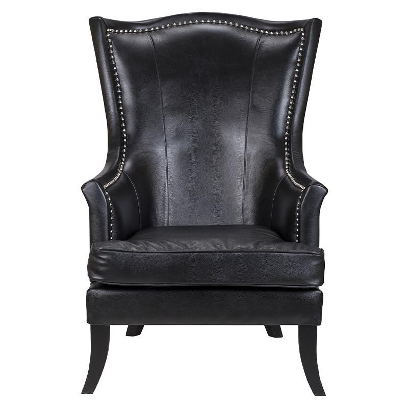 Кресло из натуральной кожи на 4-х деревянных ножках из массива бука Daniel Leather Armchair black