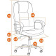 Крепкий каркас выполнен из фанеры толщиной более 10 мм – экологически чистого, надежного и долговечного материала. Сиденье с мягким наполнителем из пенополиуретана (до 35 кг/м2) стандартной плотности обладает высокими эксплуатационными качествами, не меняет форму со временем. Офисное кресло регулируется по высоте и наклону с фиксацией в одном положении. Жесткость качания настраивается при помощи специального барабана. Обивка используемый при изготовлении кресел, выдерживает до 50 000 циклов на истирание. Модель поставляется в разобранном виде. Необходима простая сборка по прилагаемой инструкции. Максимально нагрузка 120 кг.