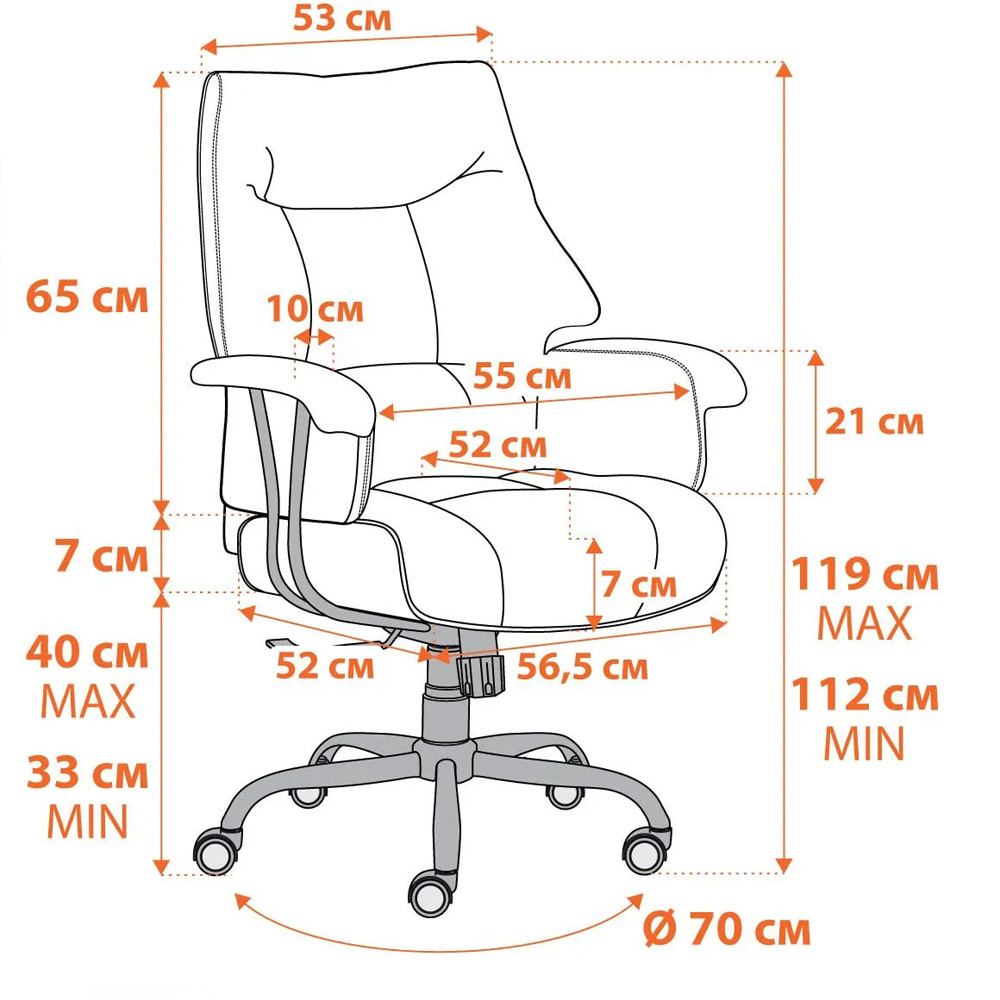 5-лучевая стальная разборная крестовина диаметром 700 мм надежна и устойчива к усиленной эксплуатации. Вместительное сиденье и анатомическая спинка с мягким наполнителем из пенополиуретана плотностью не менее 30 кг/м3 с независимым пружинным блоком легко подстраиваются под контуры тела, не теряют форму на протяжении длительного времени. Обивка из износостойкой мебельной ткани светло-коричневого цвета не требует сложного ухода, долговечна, выдерживает до 50 000 циклов на истирание. Элегантное кресло оборудовано надежным газлифтом 3 класса с ходом 60 мм. Диаметр штока – 11 мм. Модель поставляется в разобранном виде. Необходима простая сборка по прилагаемой инструкции. Максимальная нагрузка 120 кг.