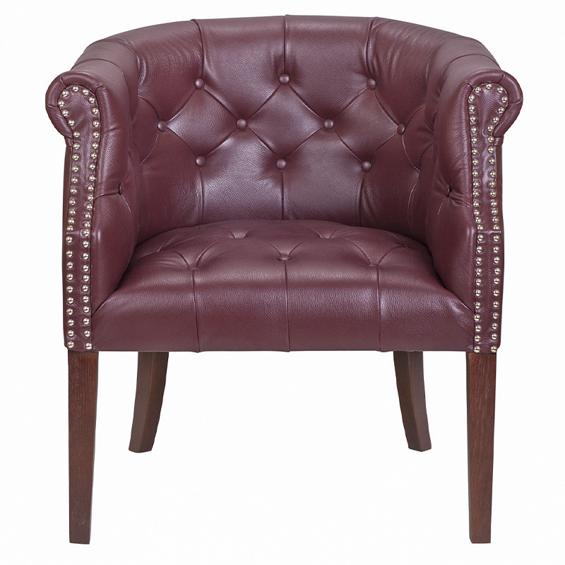Кресло низкое из натуральной кожи на 4-х деревянных ножках из массива бука Chloe Leather Armchair vine