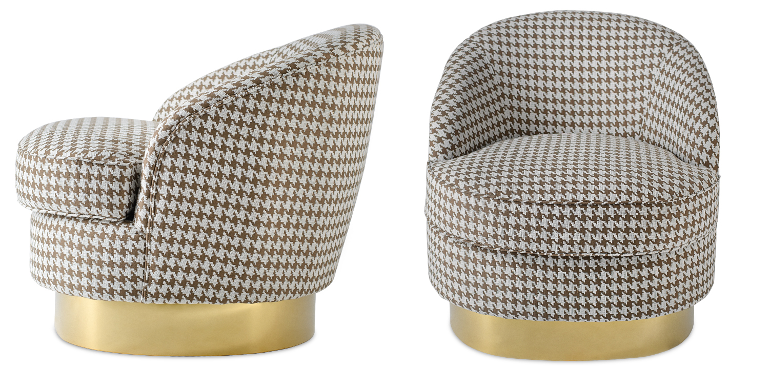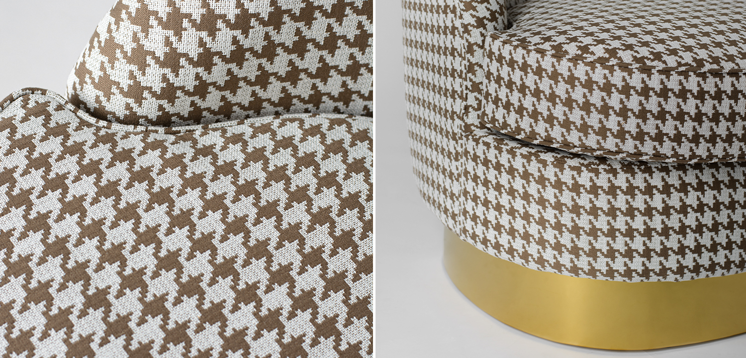 – Мягкий текстиль в классическом паттерне "гусиная лапка" – придает креслу особый шарм и индивидуальность.