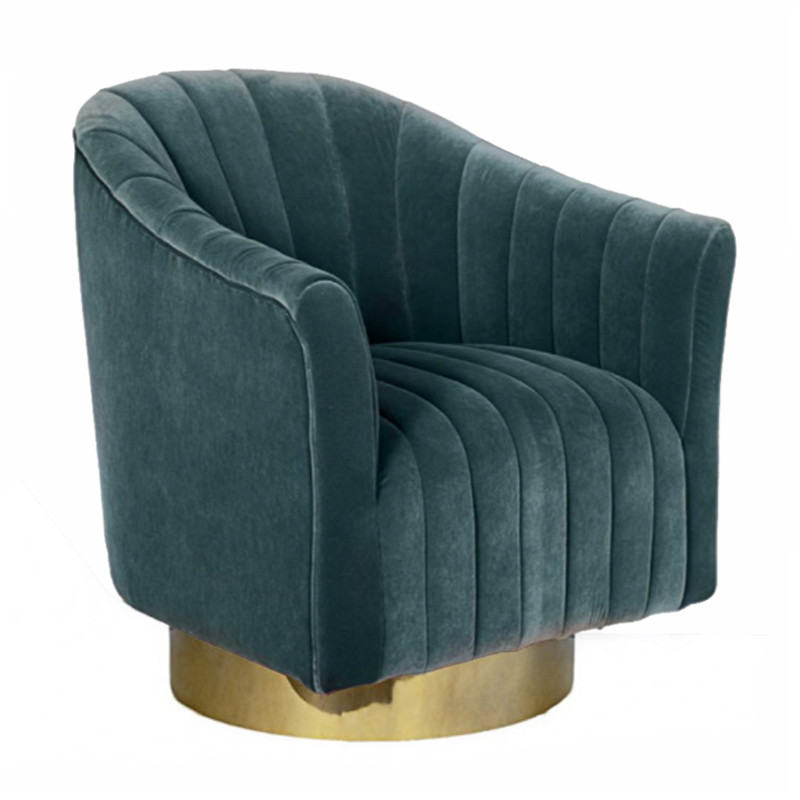 Купить кресло вращающееся в велюровой синей обивке Toronto Armchair – можно для гостиной, кабинета или комнаты отдыха, создавая уютную и роскошную атмосферу.