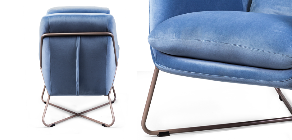 Велюровая обивка и пенополиуретановое наполнение создают идеальное сочетание для приятного отдыха. Металлическая основа гарантирует надежность и стабильность кресла.