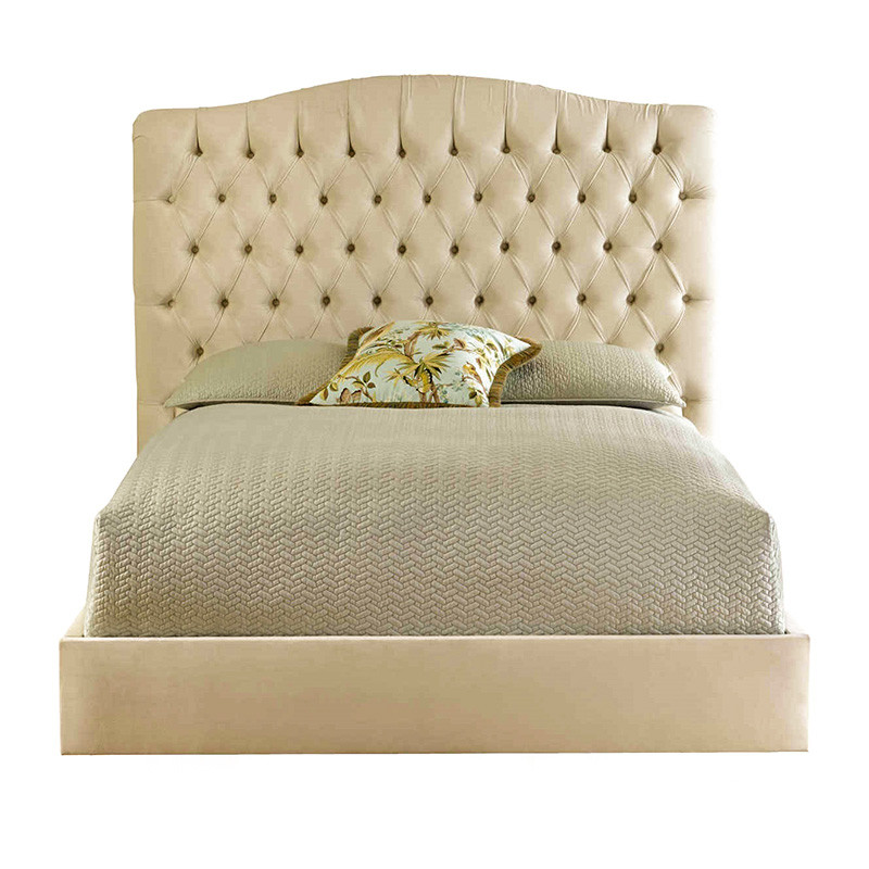 Кровать двуспальная бежевая с основанием из массива дуба с мягким изголовьем Flax Beds
