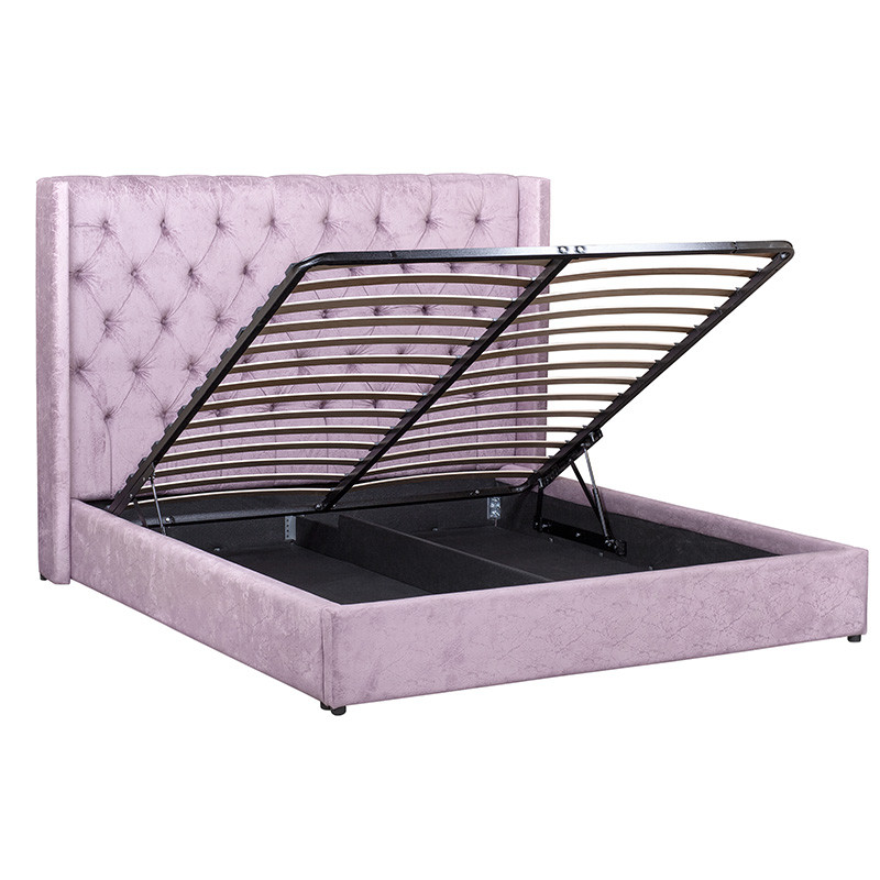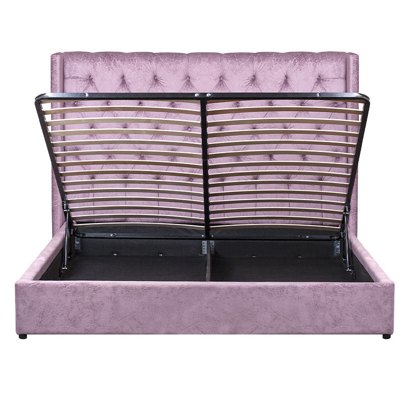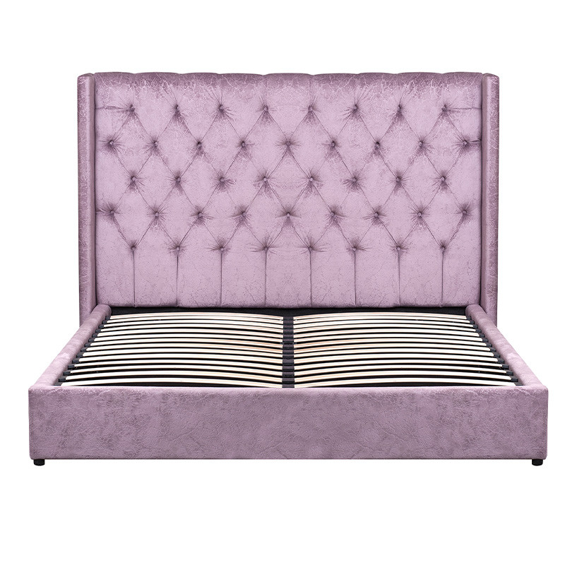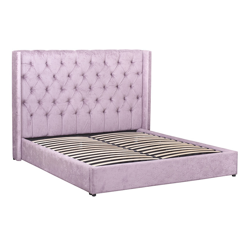 Кровать двуспальная фиолетовая с основанием из массива дерева с мягким изголовьем Velour Beds