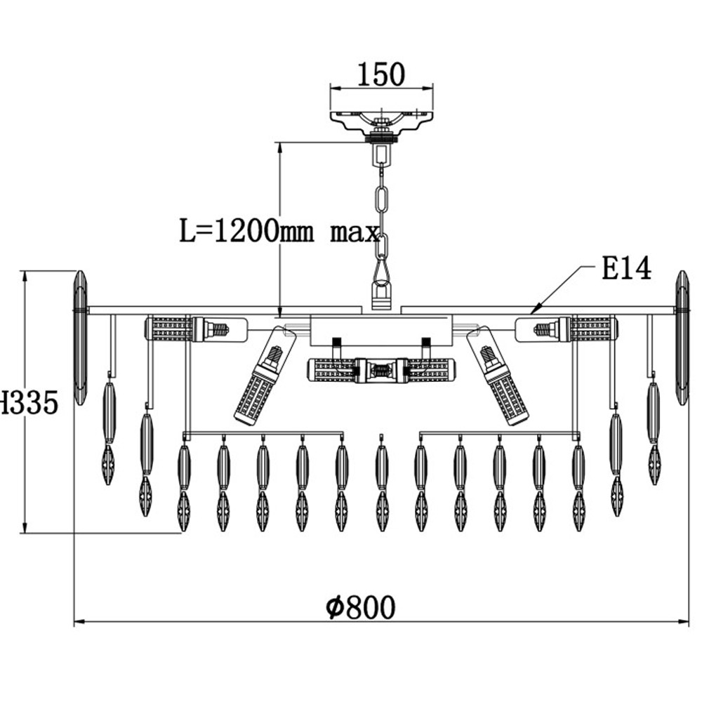 Высота min 35 см, Высота max 80 см, Диаметр 50см - 10 ламп, Диаметр 60см - 14 ламп, Диаметр 80см - 22 лампы