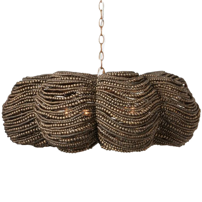 Круглая люстра волнистой формы с декором из круглых деревянных бусин коричневая Brown Wooden Beads Chandelier