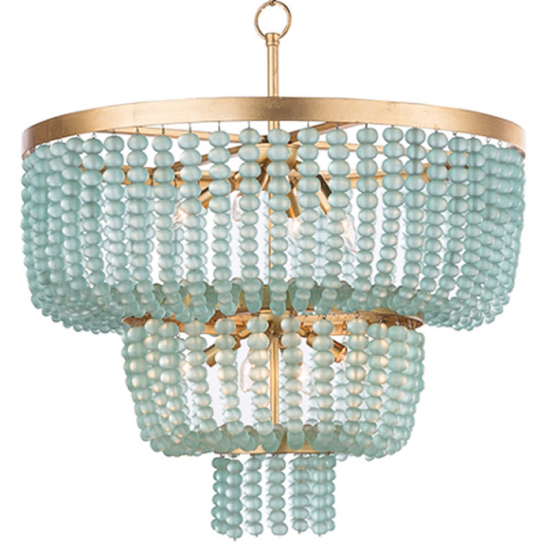 Круглая трехъярусная люстра с подвесками в виде круглых стеклянных бусин Blue Beads Chandelier