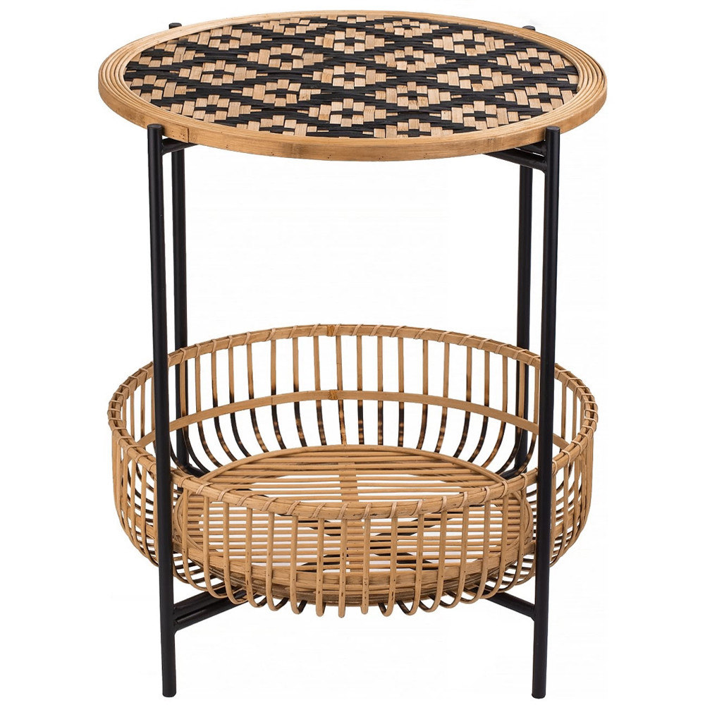 Круглый кофейный стол с плетеной столешницей и полкой Norberta Wicker Coffee Table