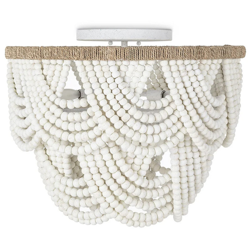 Круглый потолочный светильник с подвесками из круглых деревянных бусин Wooden Beads White Ceiling Lamp