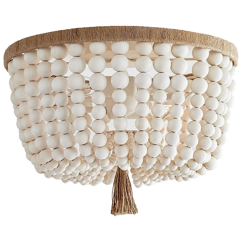 Круглый потолочный светильник украшенный круглыми белыми бусинами Wooden Beads Ceiling lamp