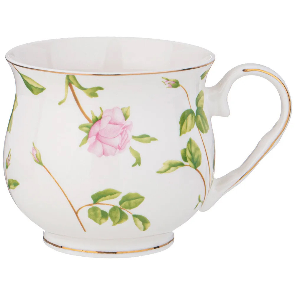 Кружка фарфоровая белая с цветочным принтом 480 мл Flower Porcelain Collection