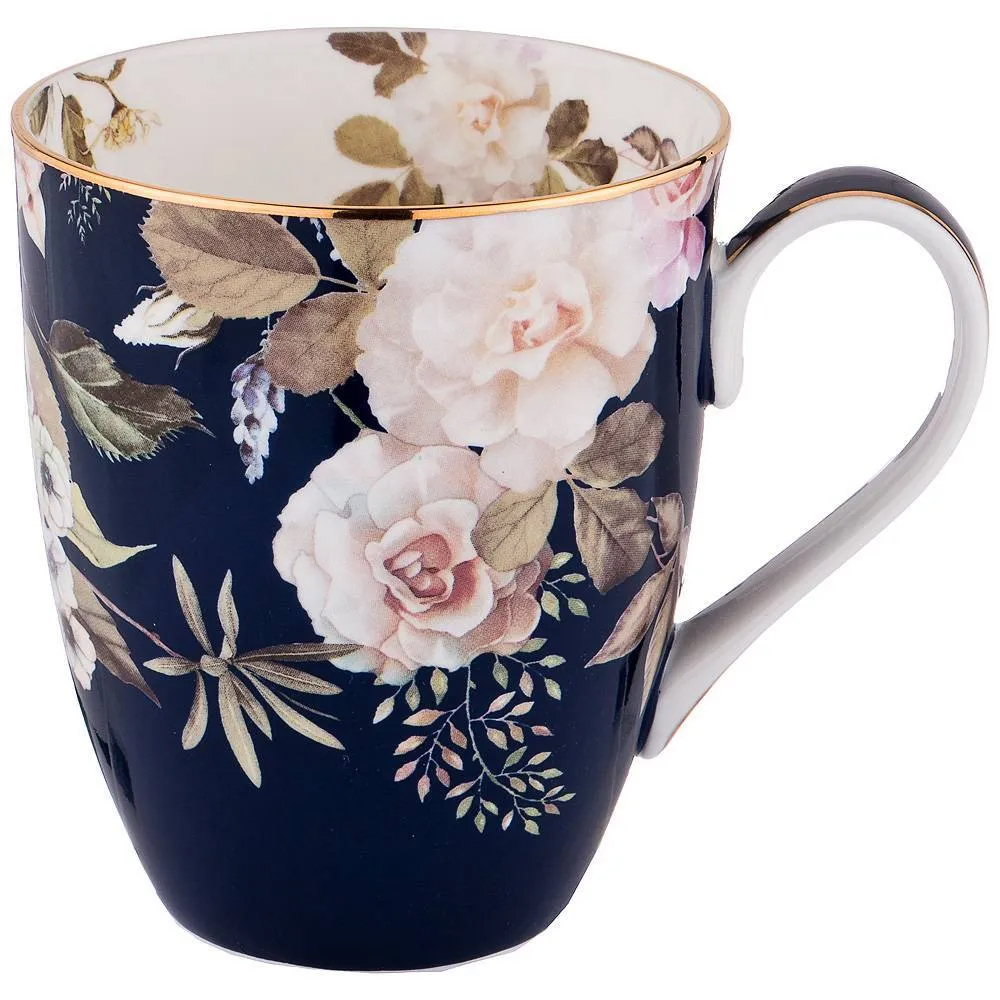 Кружка синяя из фарфора с рисунком цветов 400 мл Garden Whisper Porcelain Set