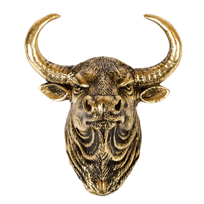 Скульптура из латуни в виде головы быка, которая прекрасно