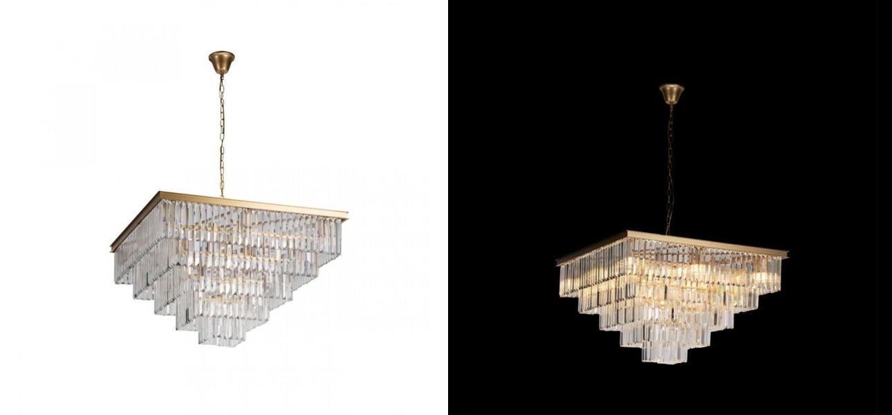 Квадратная Люстра Odeon GOLD iron Five layers Прозрачное Стекло 80х80