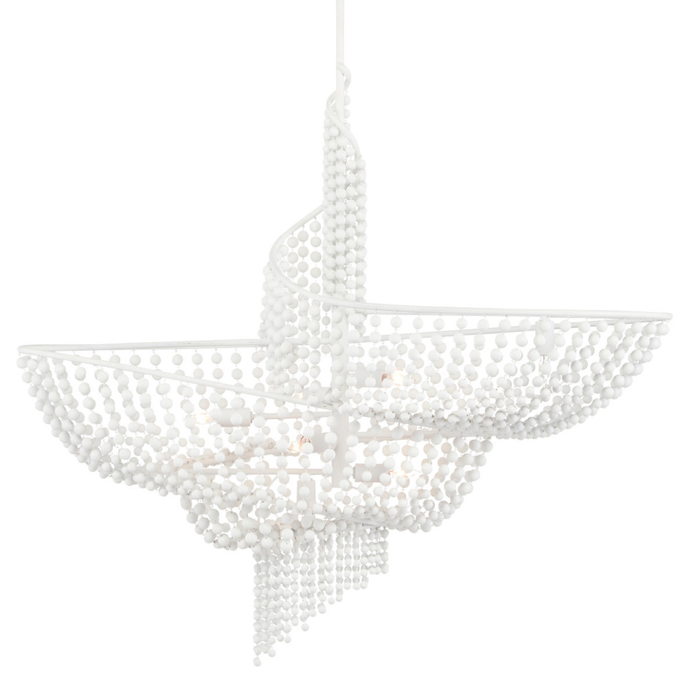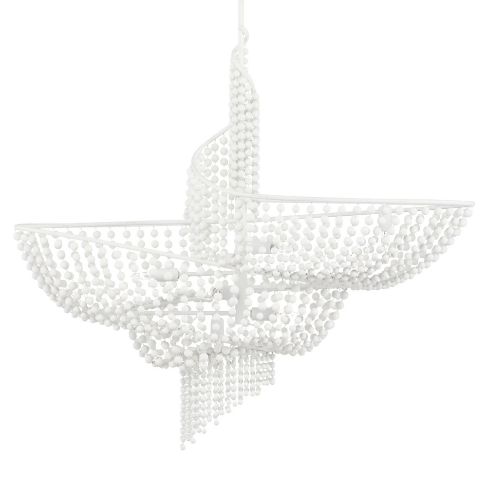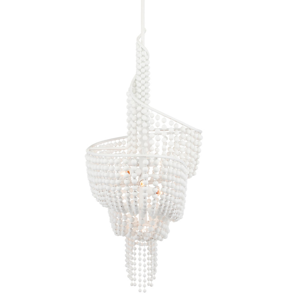 Люстра белая в форме спирали с декором из круглых деревянных бусин White Wooden Beads