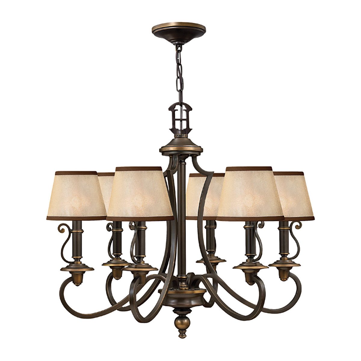 Люстра бронзового цвета с бежевыми абажурами из органзы в классическом стиле Hinkley