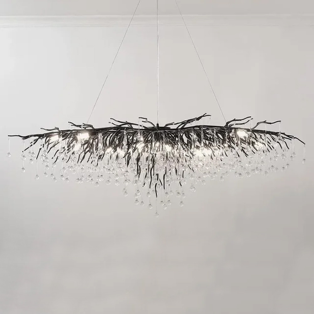 Люстра черная овальная с прозрачными стеклянными подвесками в форме капель FAIRYTREE Light