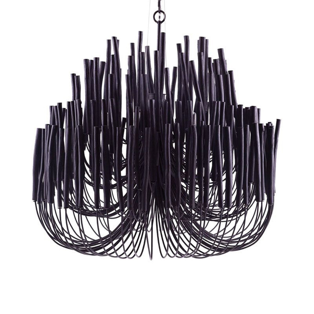 Люстра черная с несколькими ярусами деревянных палочек Bright Wooden Chandelier