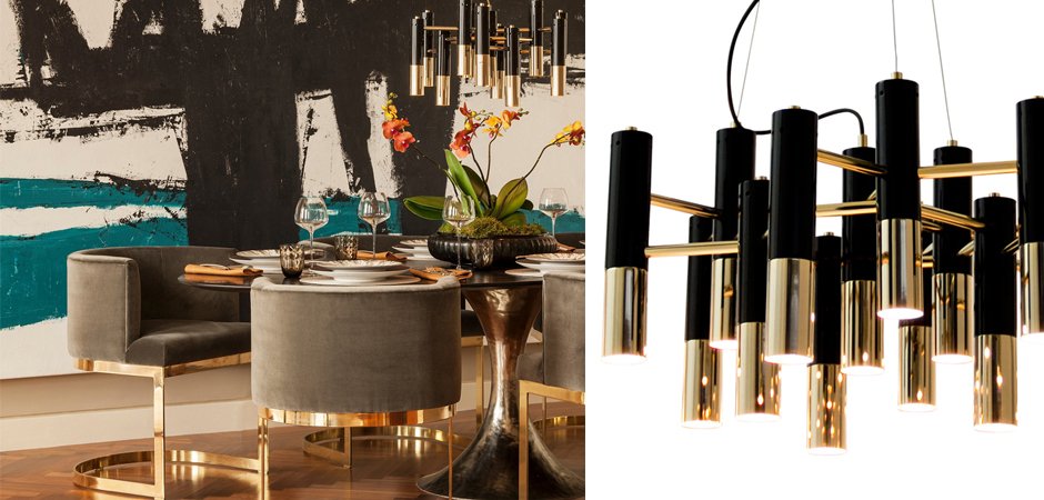 Купить люстру Ike – это выбрать ритмическую композицию, созданную из чистых вертикальных линий и контраста золотого и черного цветов.