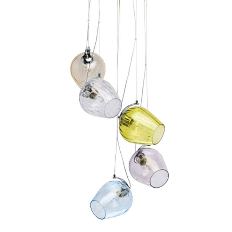 Люстра каскадная с 5-ю разноцветными стеклянными плафонами Kaleido