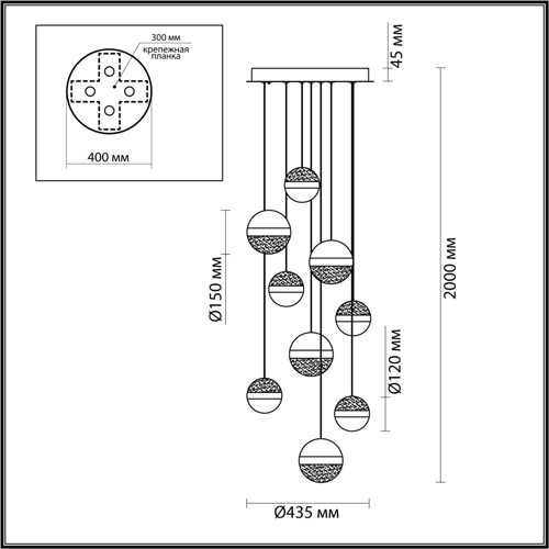 Люстра каскадная с 9-ю подвесами бронза и никель Peggy Futura lamp