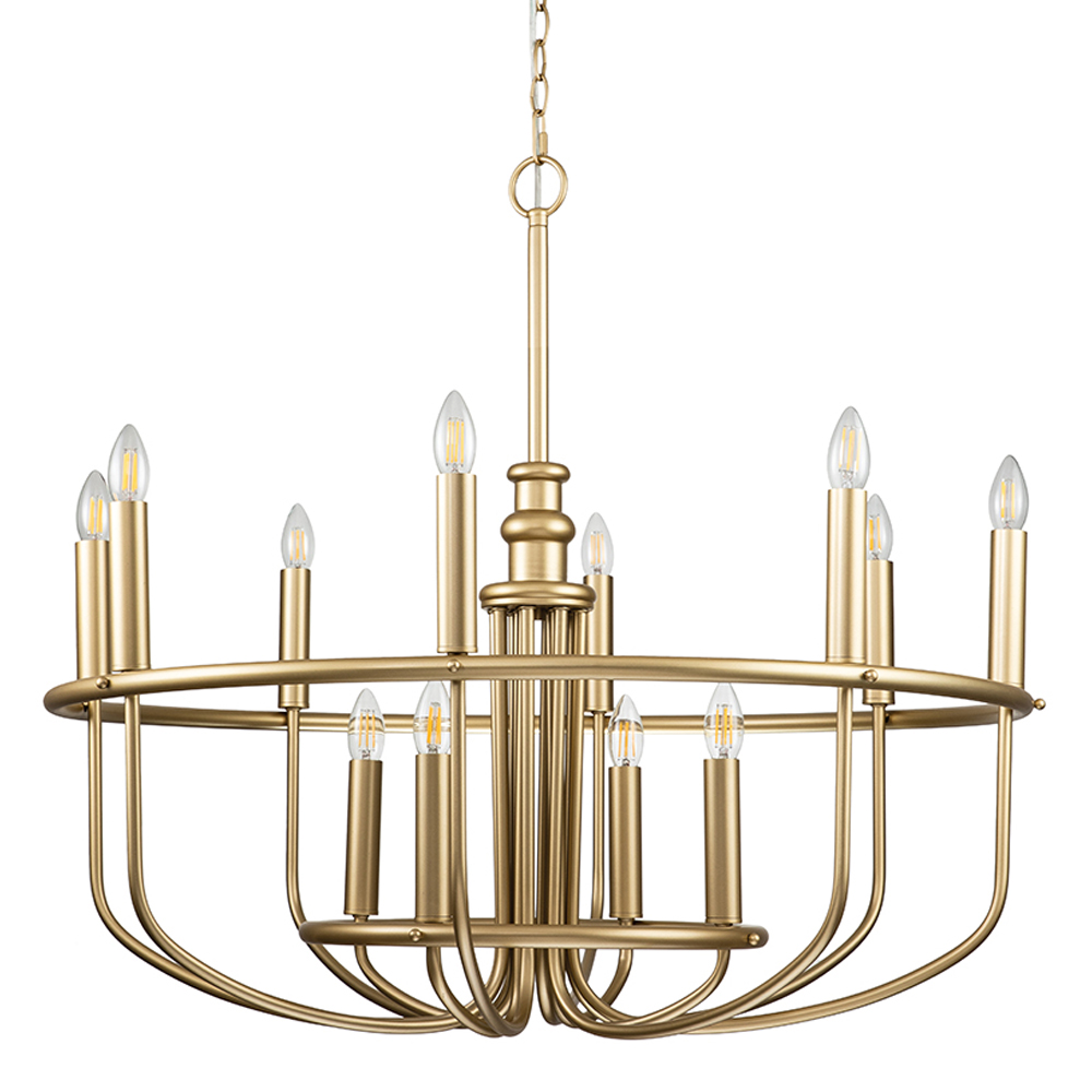 Люстра круглая двухъярусная цвета латунь с 12-ю лампами Kichler