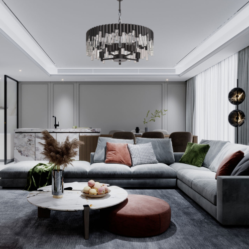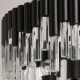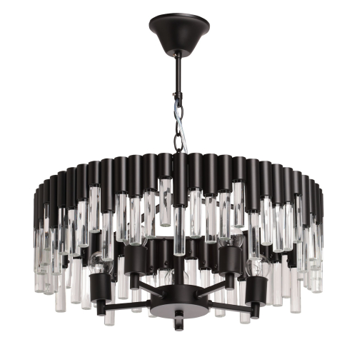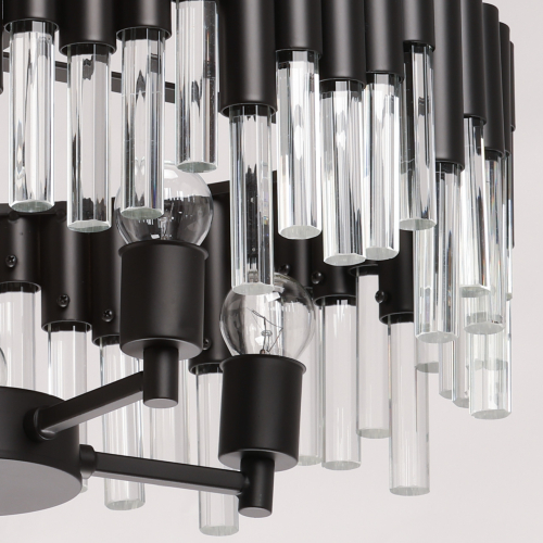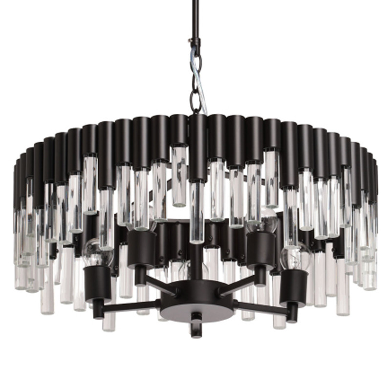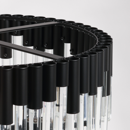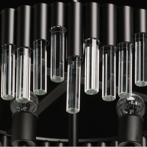 Люстра круглая из матового черного металла с подвесками из прозрачных стеклянных трубок Noir Tubes