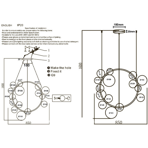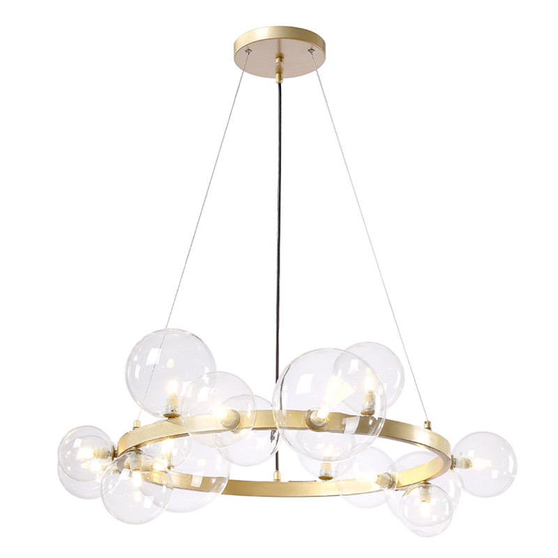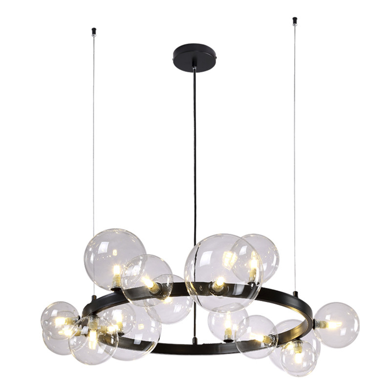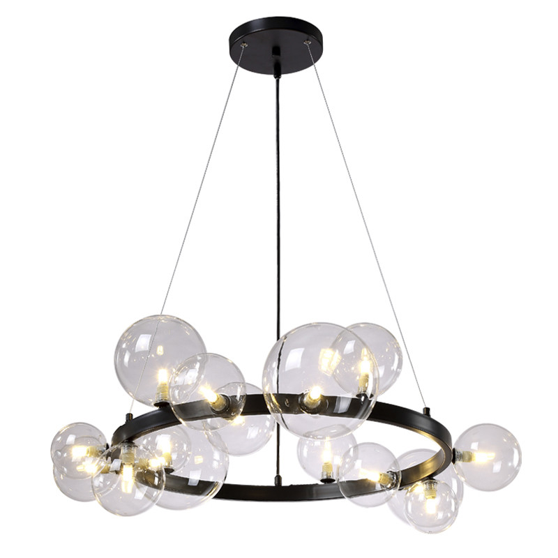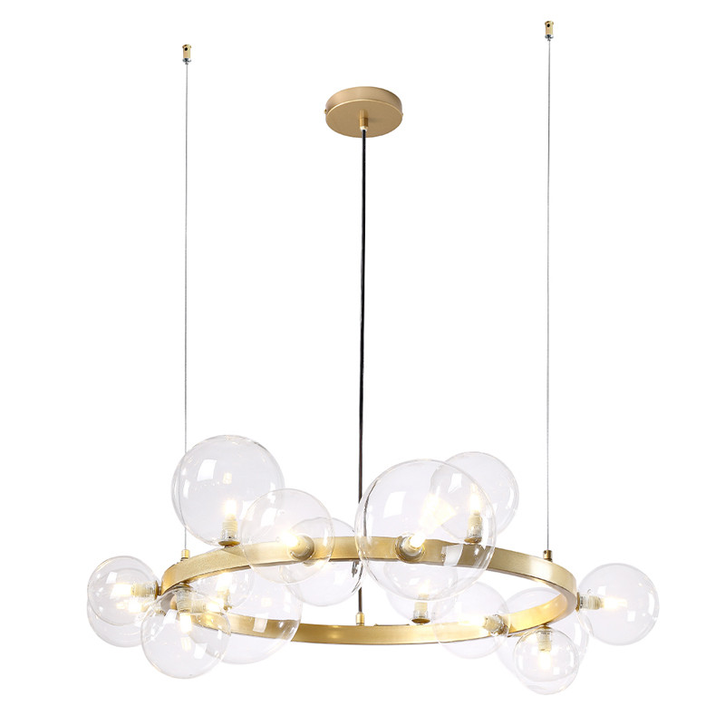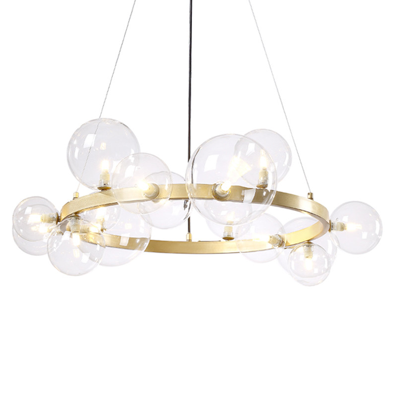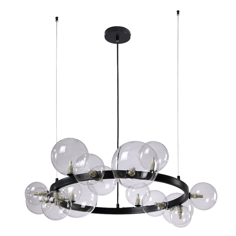 Люстра круглая подвесная с 15-ю прозрачными шарообразными плафонами из стекла Iona chandelier