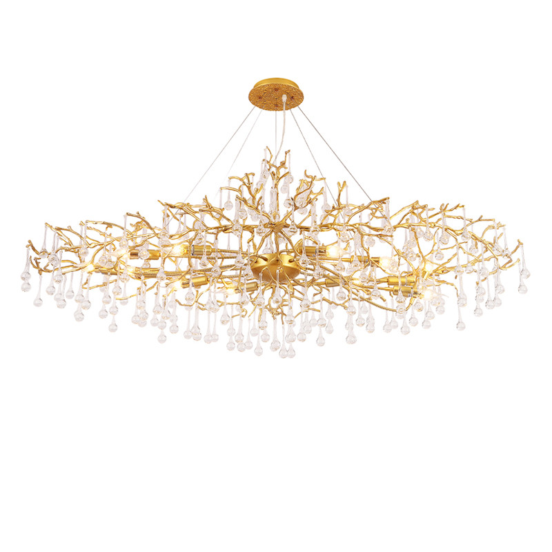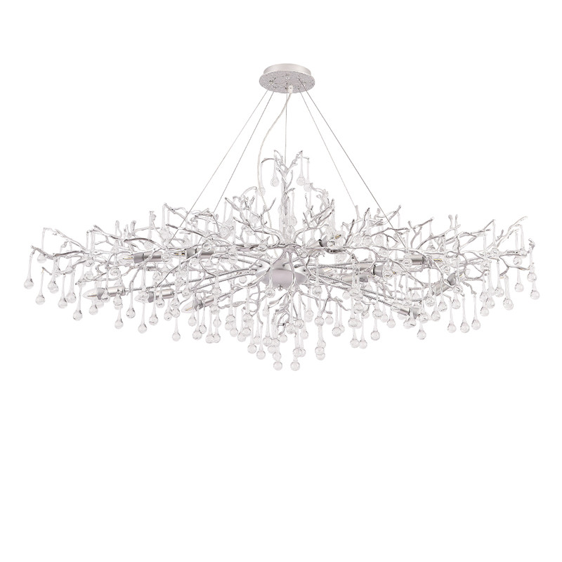 Люстра круглая подвесная с декором в виде ветвей и прозрачных подвесок из стекла в форме капель Droplet Chandelier