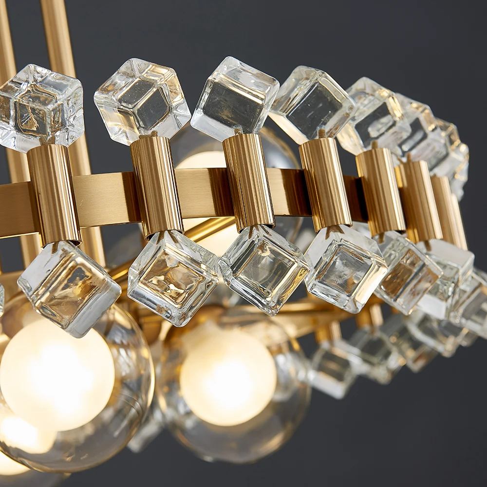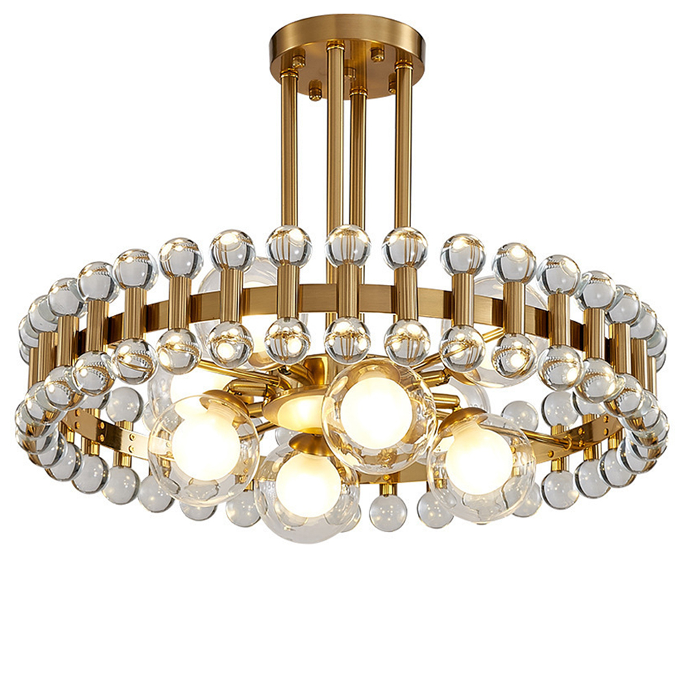 Люстра круглая золотистая с прозрачными стеклянными плафонами в форме шара Crystal Kaleidoscope
