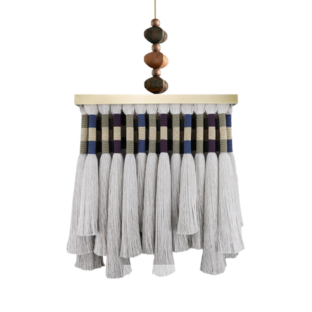 Люстра квадратная плетеная с бахромой Wicker Square Chandelier with Tassels