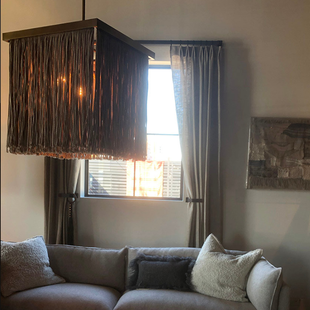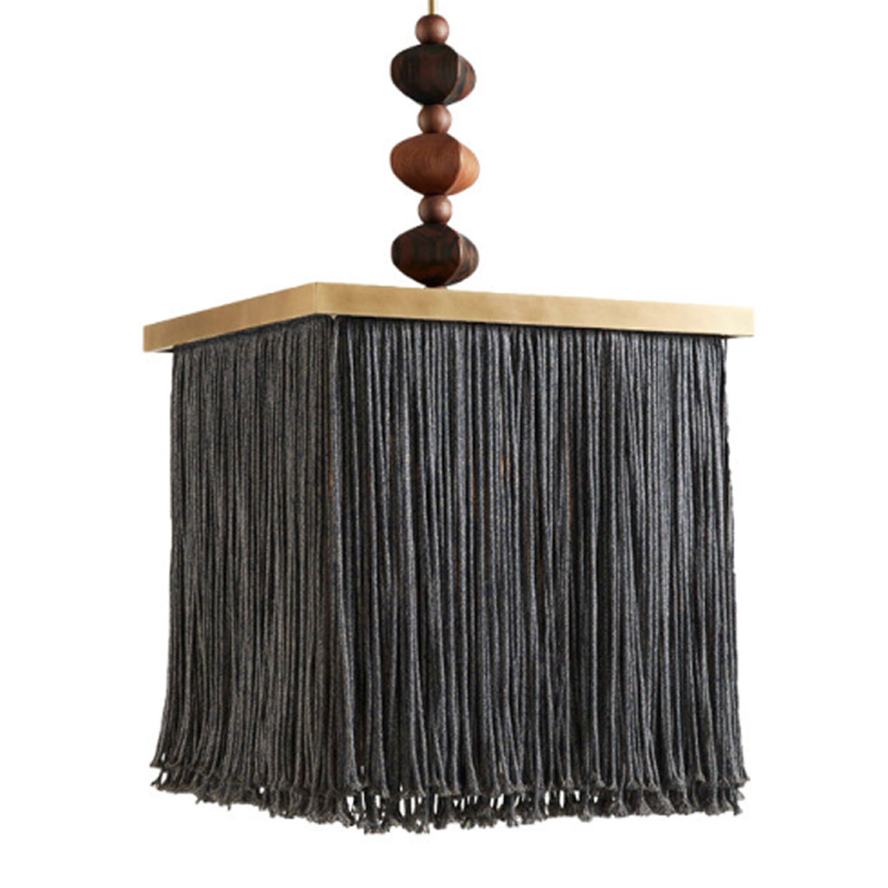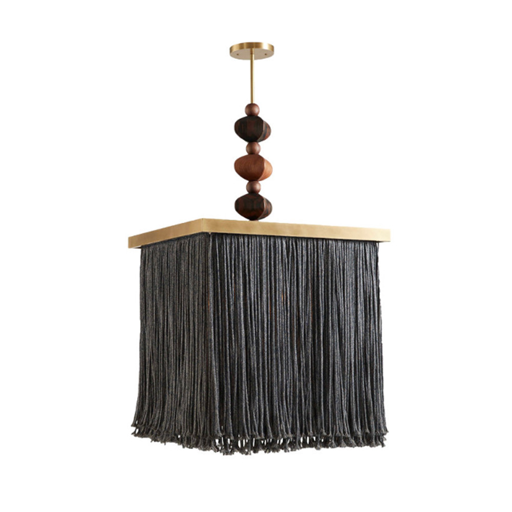 Люстра квадратная с бахромой и подвесом из деревянных бусин Psyche