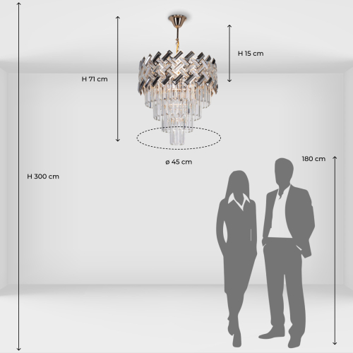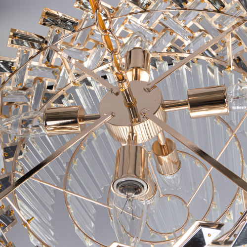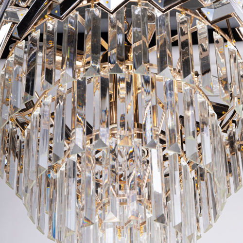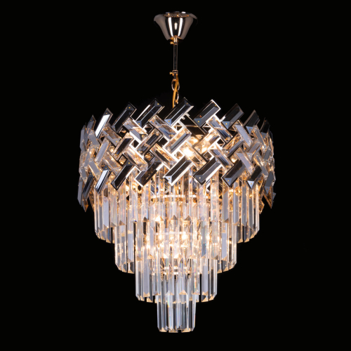 Люстра многоярусная с переплетенными металлическими элементами черного и золотого цвета и прозрачными хрустальными подвесками Empire Chandelier Crystal