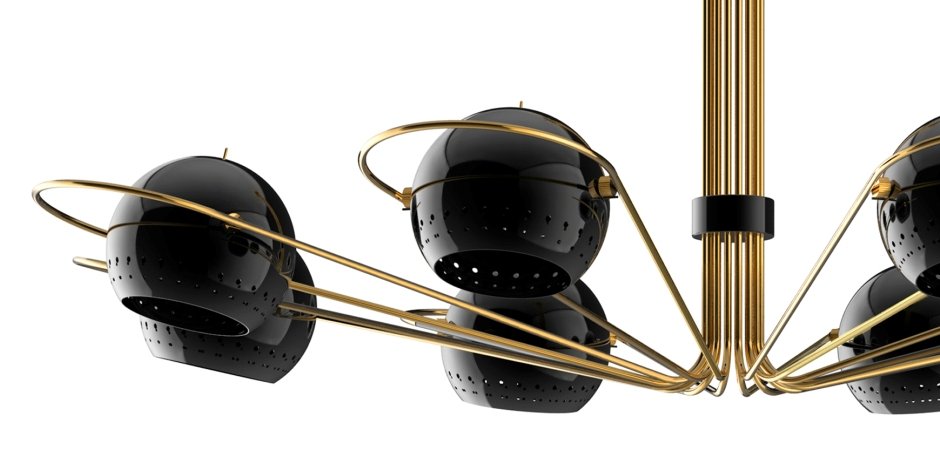 Выполнена она в стиле арт-деко, характерном для 30-40-х годов XX века. А люстра Neil по дизайну Delightfull – отсылает нас к золотым годам освоения космоса.