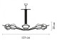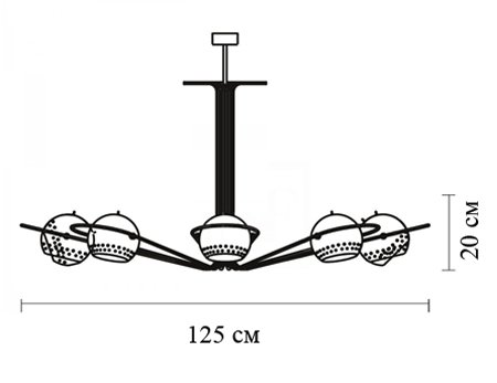 Люстра имеет круглые арки и 8 сферических черных рассеивателей-плафонов. Конструкция и технические устройство люстры позволяют регулировать угол наклона плафонов, а также включать лишь половину из них.