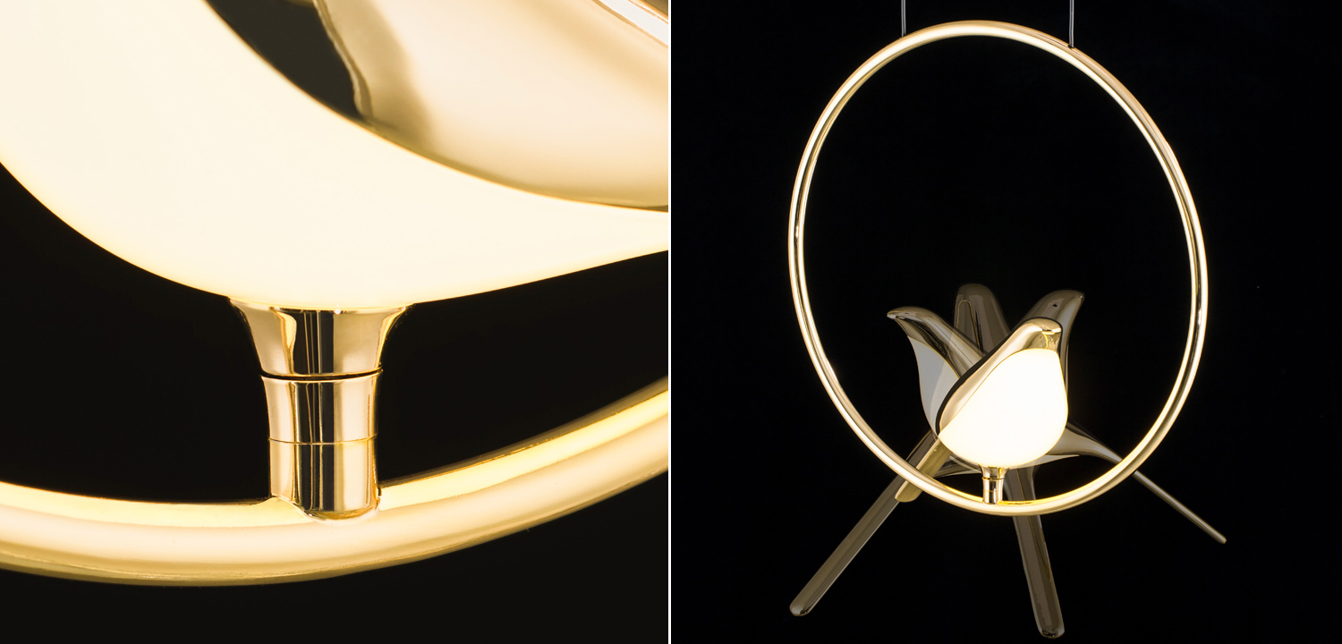 Эта люстра сочетает в себе металлические и полимерные элементы, создавая утонченное и современное визуальное впечатление. Металлическая основа придает прочность и устойчивость конструкции, а полимерные детали добавляют легкости.