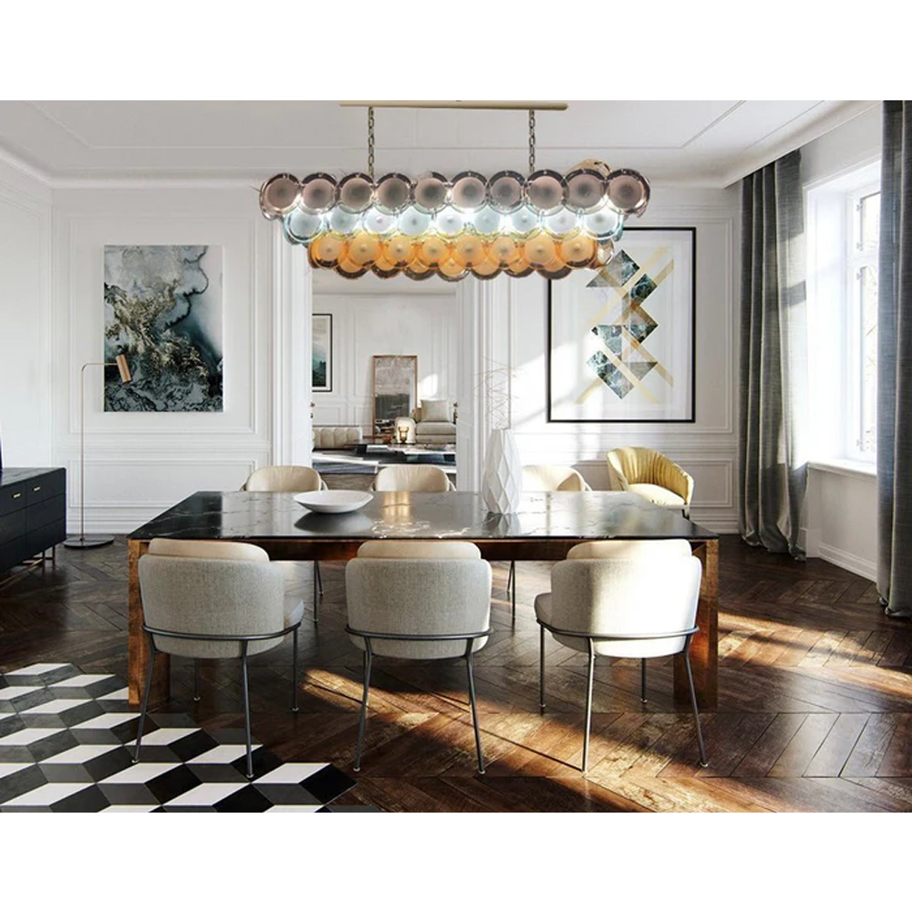 Люстра овальная с каскадом из разноцветных круглых подвесов Key Lustar