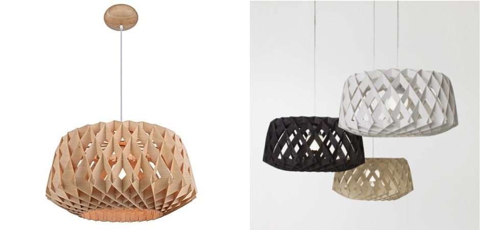 Абажур светильника собран вручную из множества специально обработанных и окрашенных кусочков березы, что является объектом лучших традиций скандинавской школы дизайна.