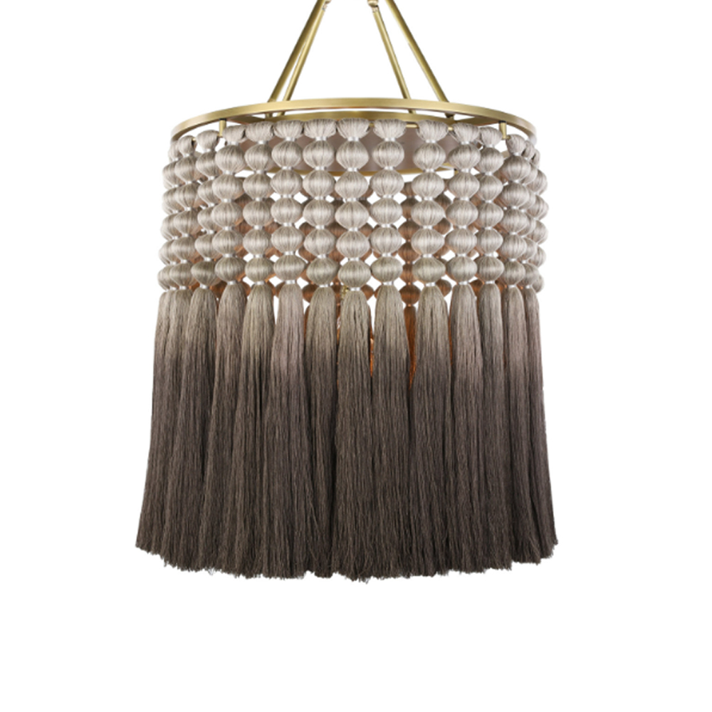 Люстра плетеная с кисточками на золотистом каркасе Boho Tassel Chandelier