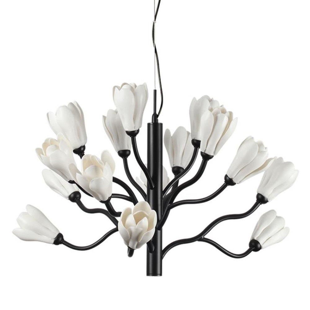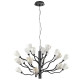Люстра подвесная черного цвета с ветвями и белыми фарфоровыми цветами Floralis