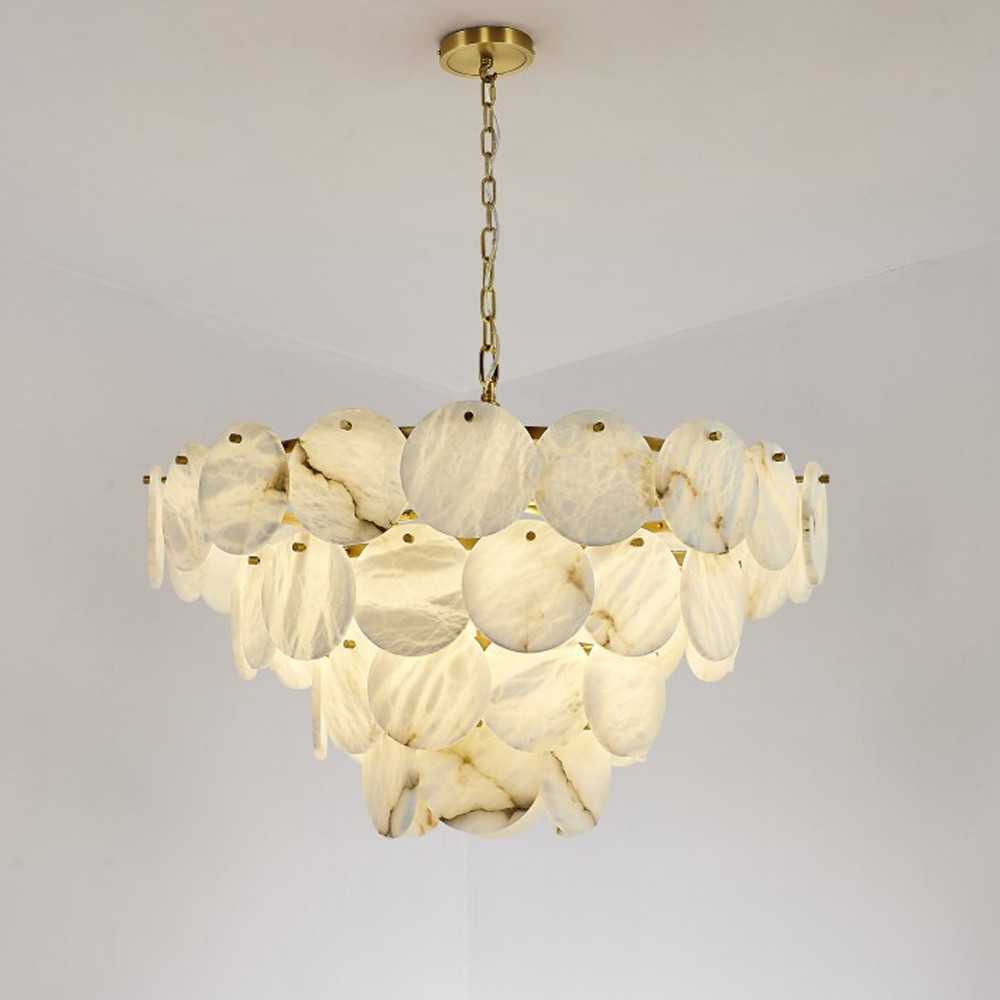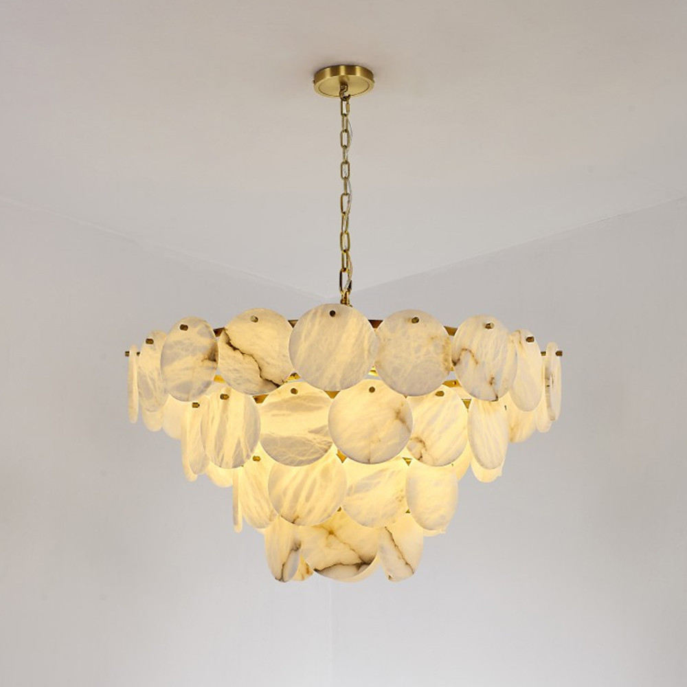 Люстра подвесная четырехъярусная с подвесками в форме дисков Cryptocrystalline Stone