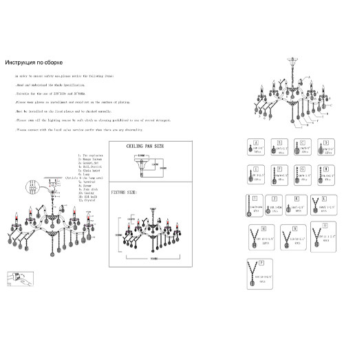 Люстра подвесная двухъярусная с 18-ю лампочками и прозрачными хрустальными подвесками на хромированном основании Crystal lamps