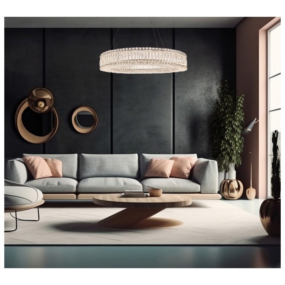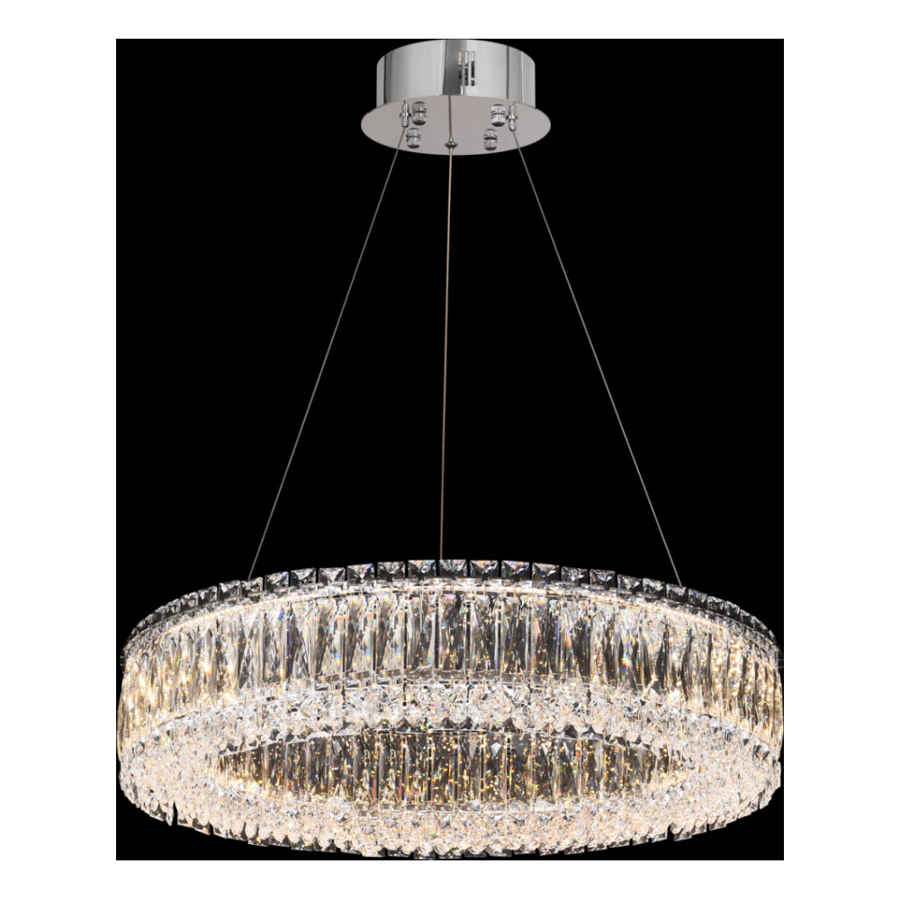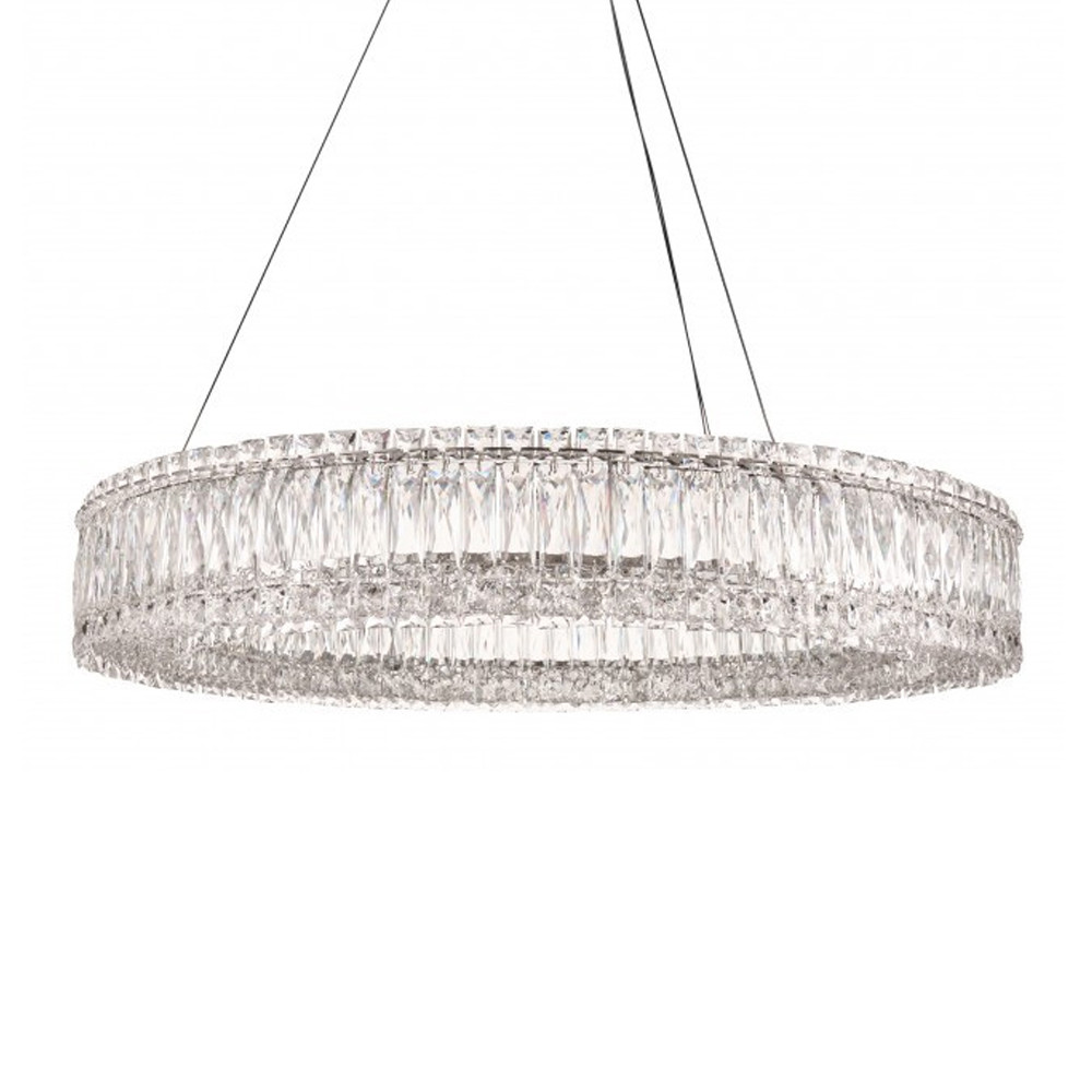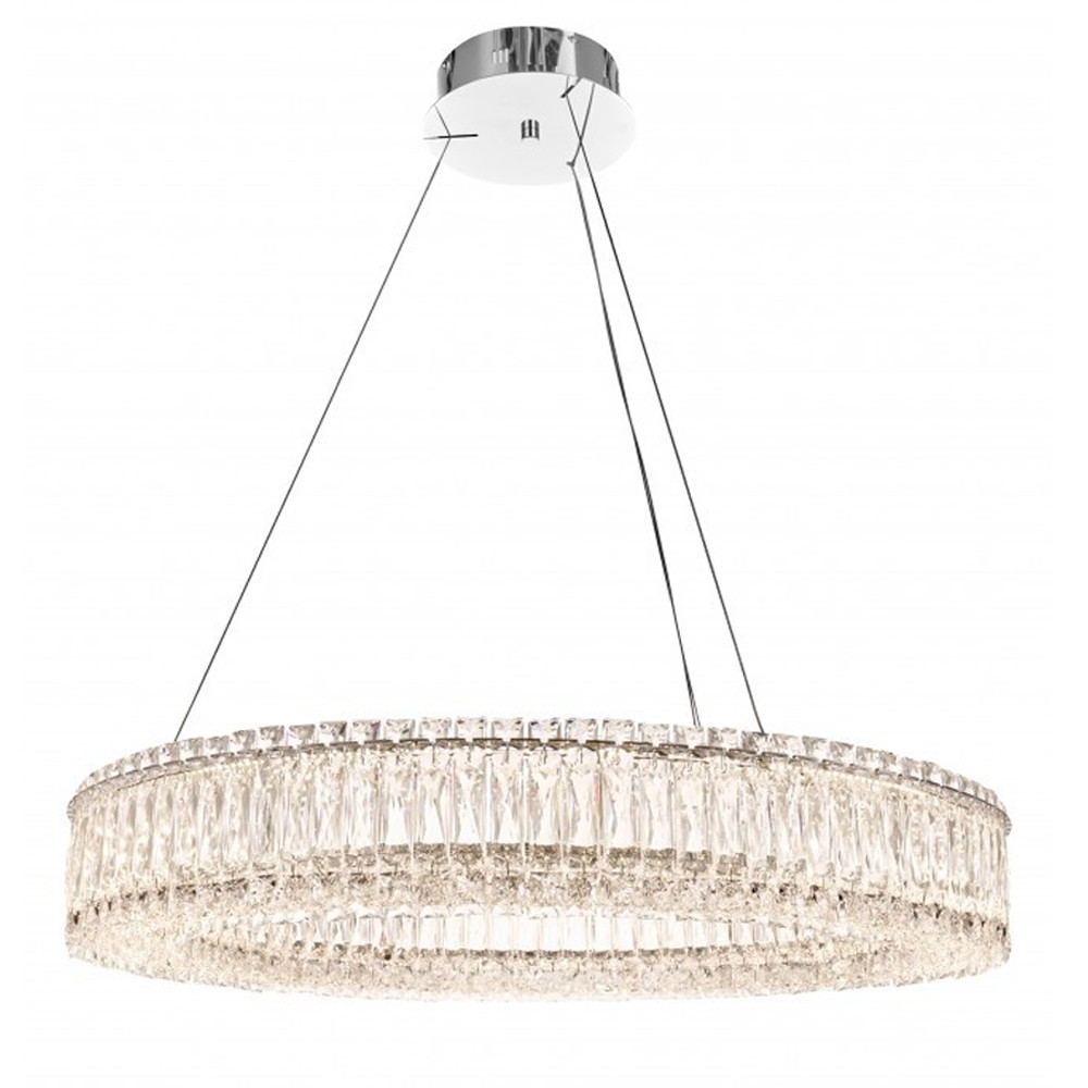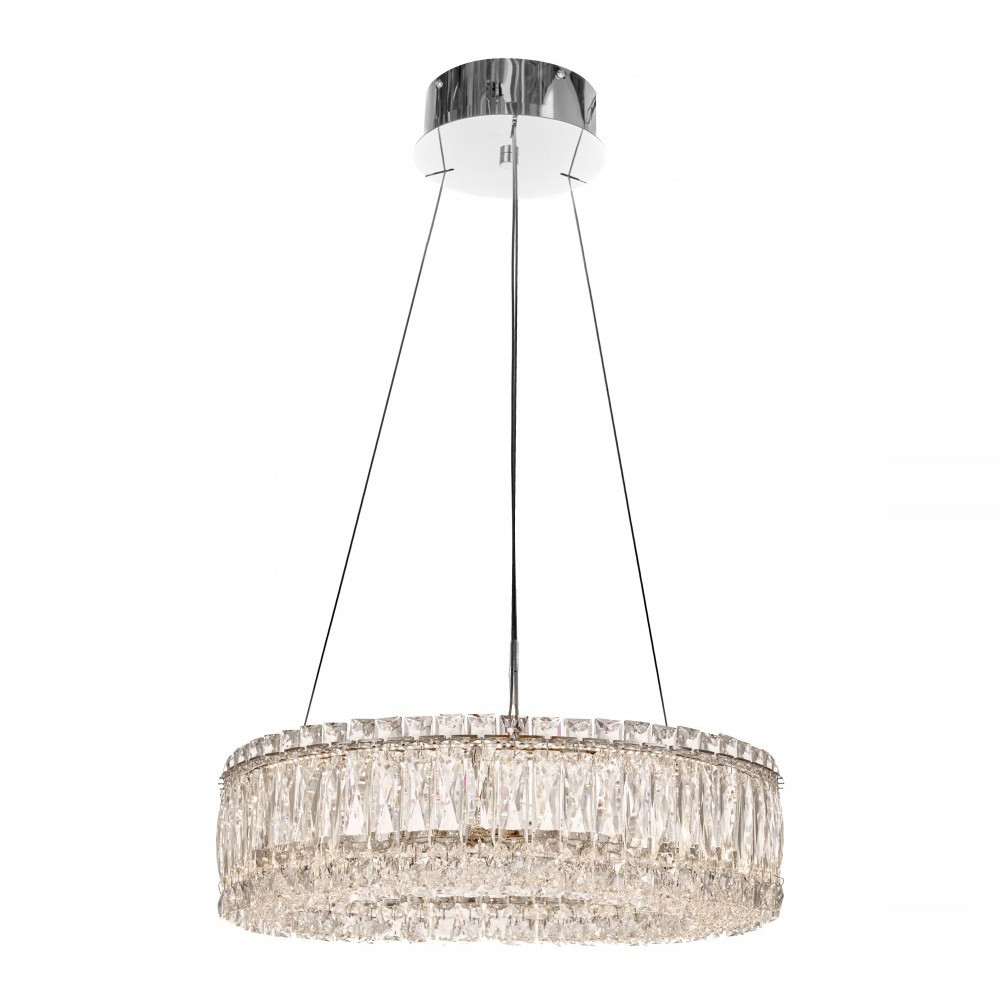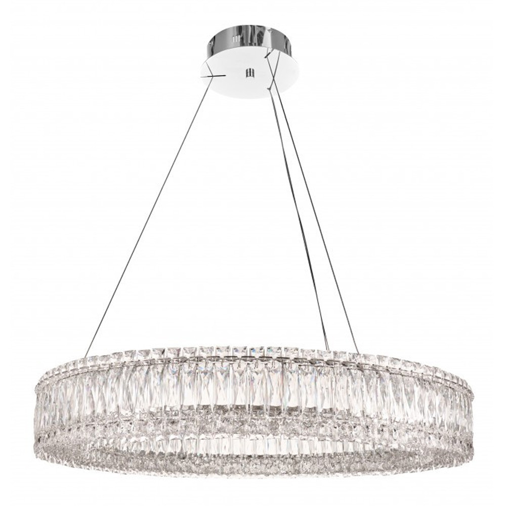 Люстра подвесная круглая из прозрачного хрусталя с корпусом из металла цвета хром Selfsufficient