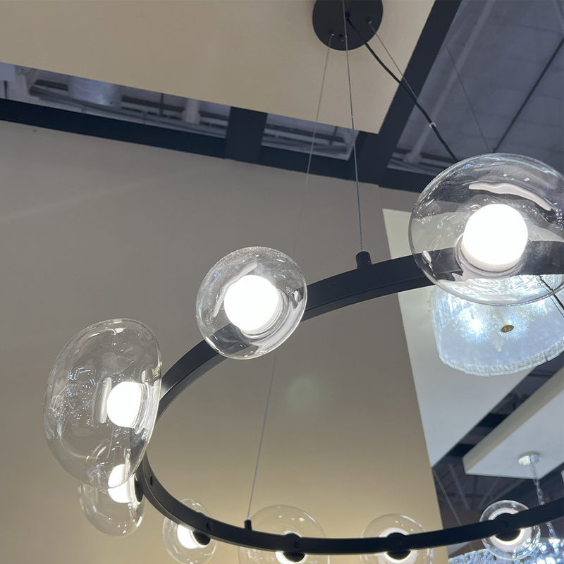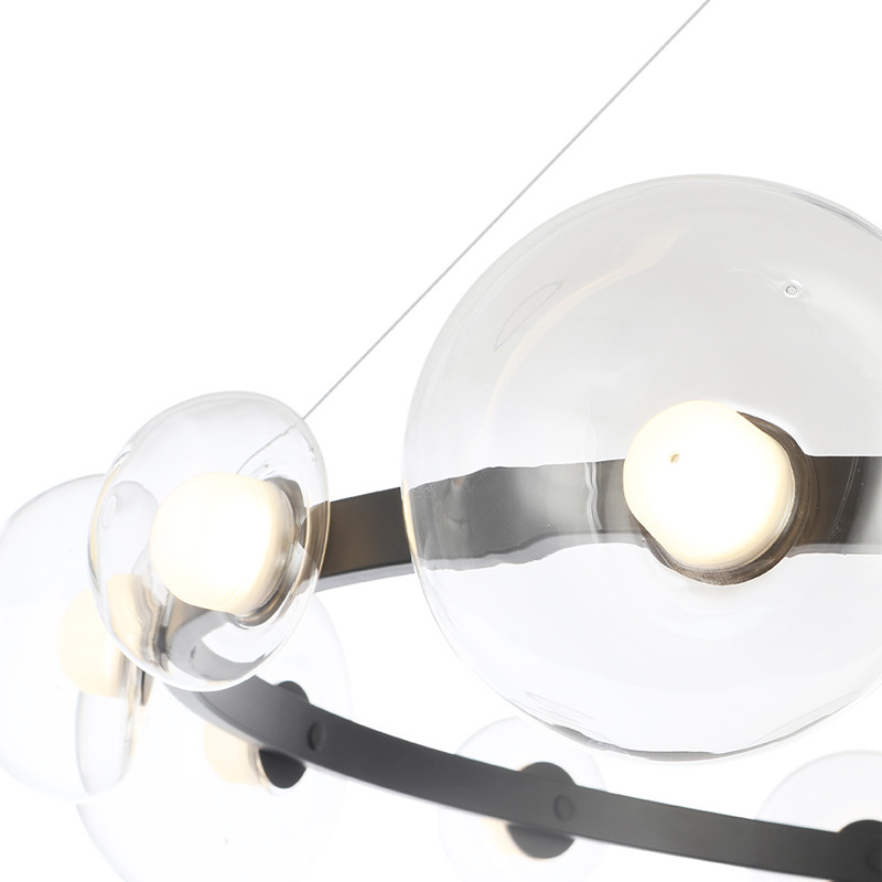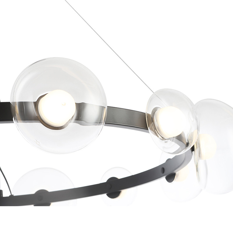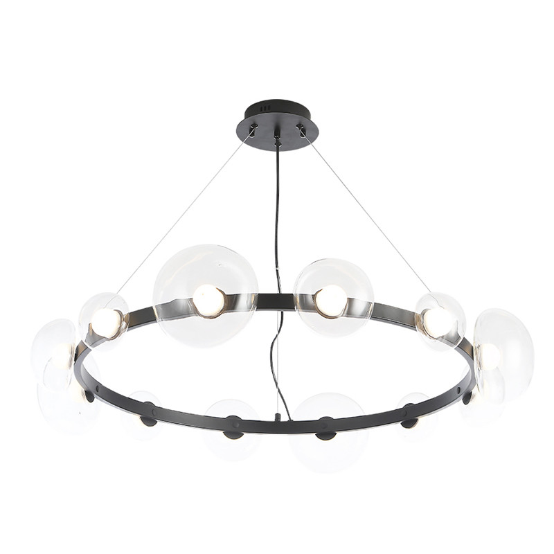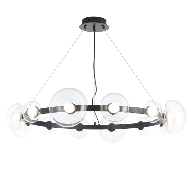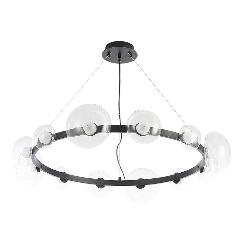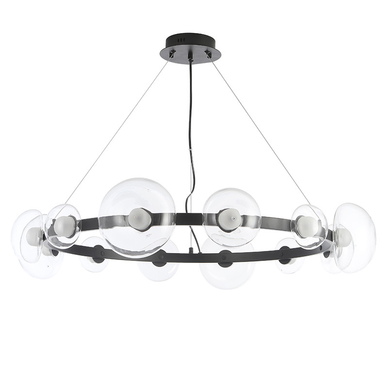 Люстра подвесная круглая с 12-ю прозрачными куполообразными плафонами и черным металлическим основанием Flos Wireline Lighting