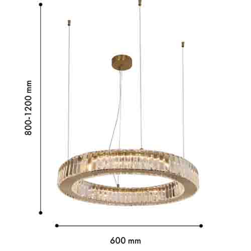 Люстра подвесная круглая светодиодная из хрусталя золотого цвета Ring Horizontal
