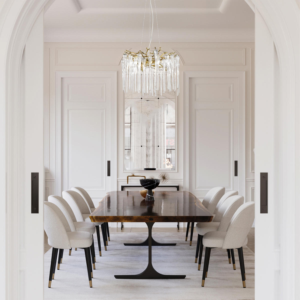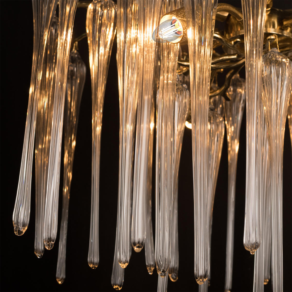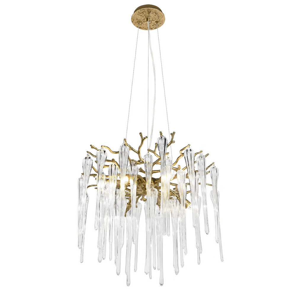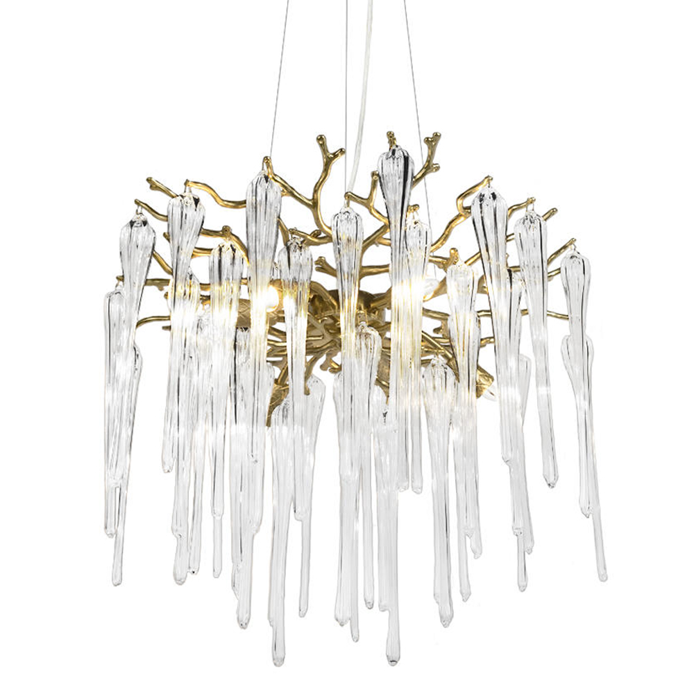 Люстра подвесная круглая в виде ветвей деревьев бронзового цвета с прозрачными подвесками-каплями Droplet Chandelier