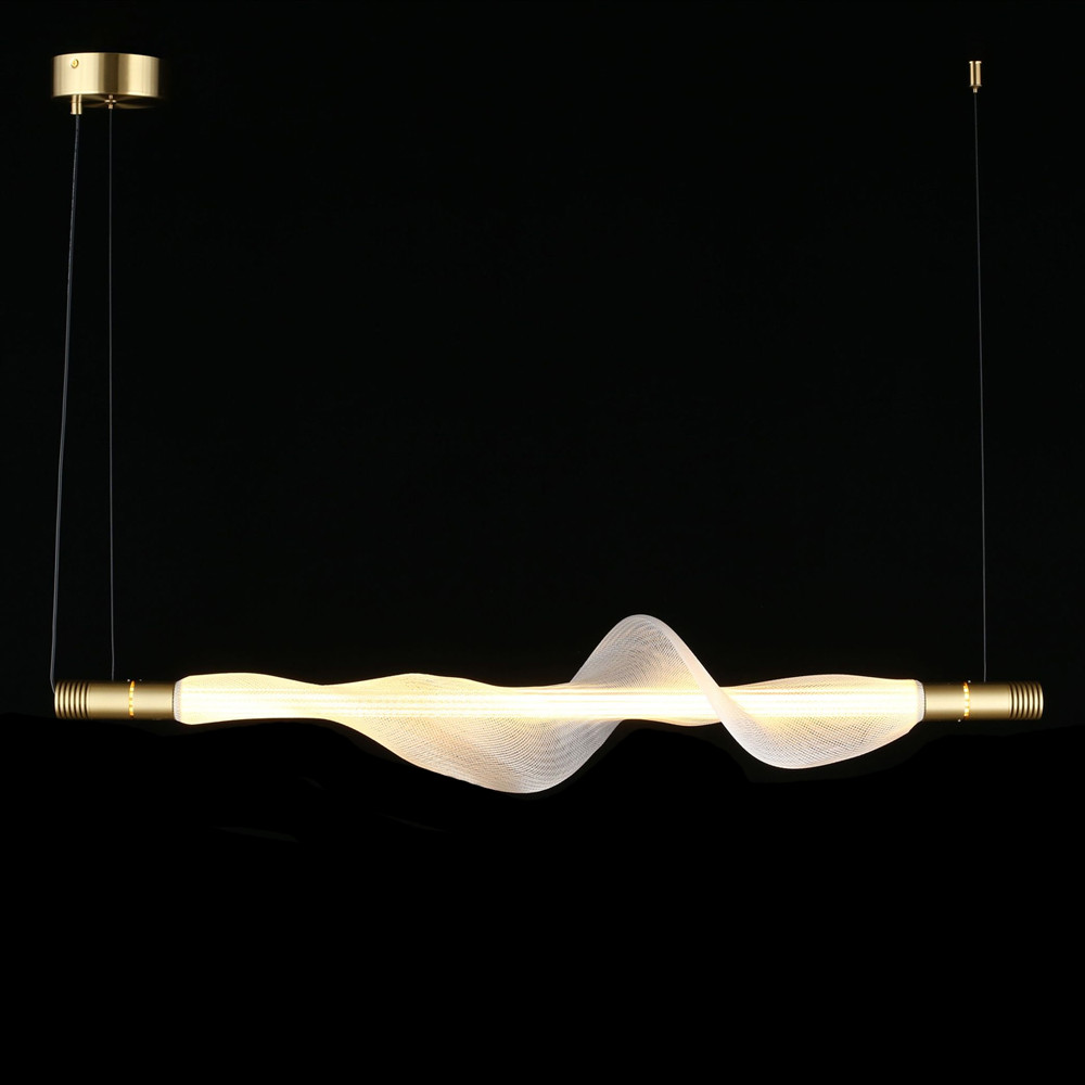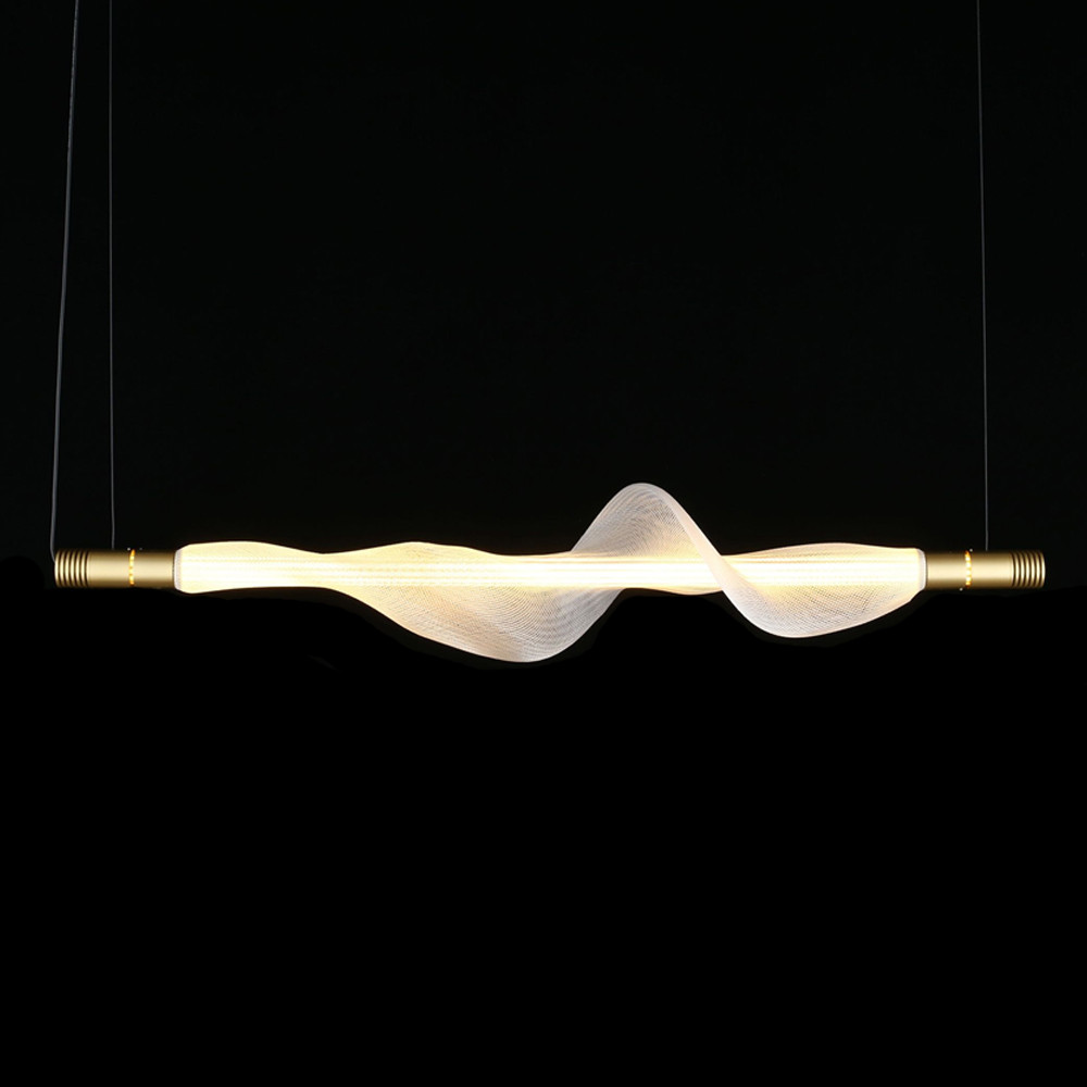 Геометрическая подвесная люстра Adilin – Линейная форма с легким силуэтом, будто шлейфом из ткани.