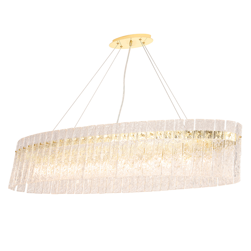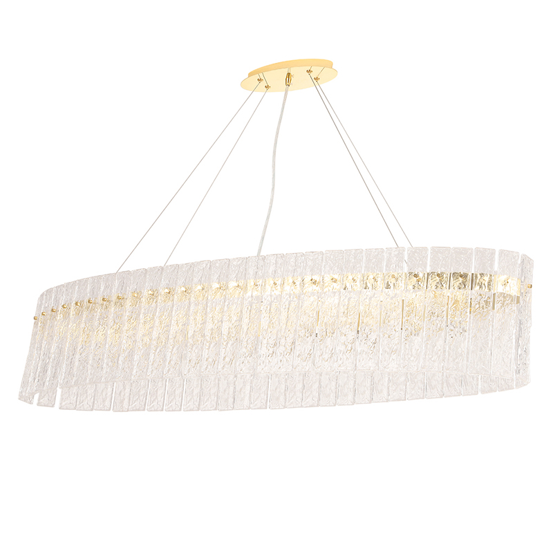 Люстра подвесная овальная с рельефными стеклянными панелями и золотым металлическим каркасом Textured Glass Chandelier